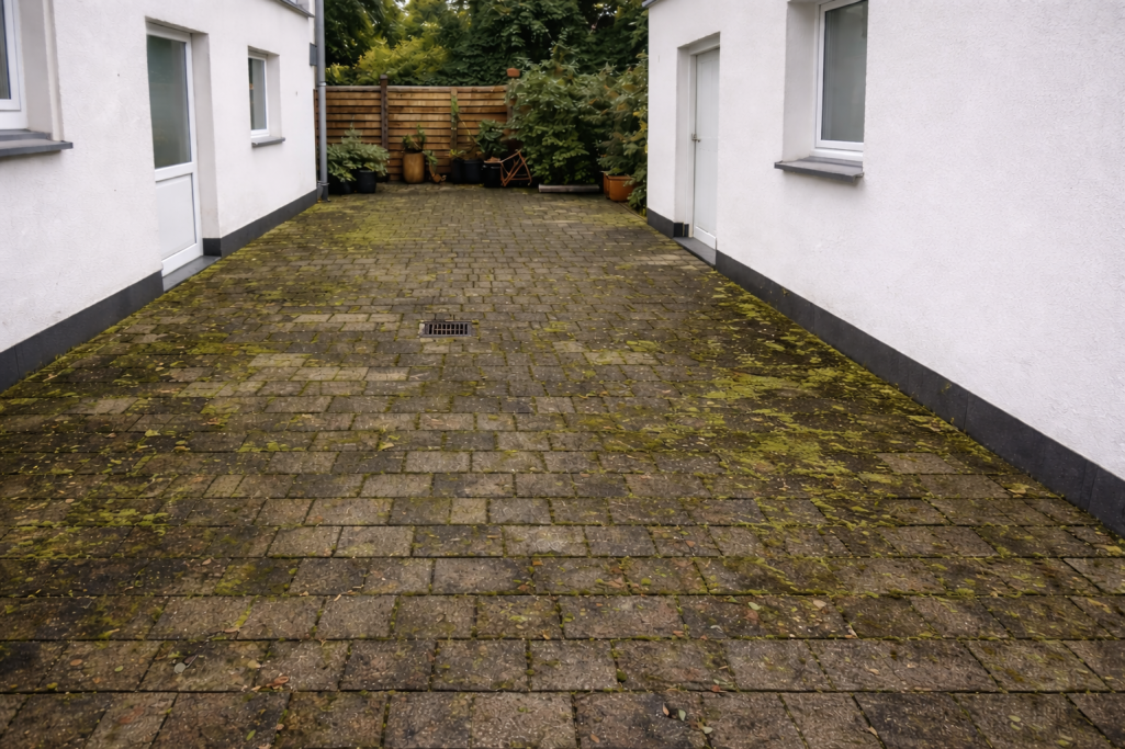 Moos, Algen und hartnäckiger Schmutz werden zuverlässig entfernt – für saubere, gepflegte und rutschfeste Außenbereiche.